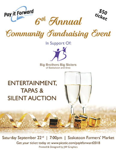 JW Graphics has provided tickets and posters for their annual Fundraising Event for the last two years. Pay It Forward is a marketing group that picks one nonprofit organization to throw an event for every September.